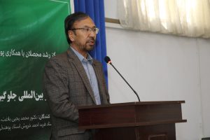 سخنران دوم برنامه، استاد فرید احمد خروش، استاد پوهنحی علوم سیاسی، سخنرانی خویش را با تشریح وضعیت بحرانی محیط زیست افغانستان آغاز نمود و تخریب گسترده منابع طبیعی کشور را «یک تراژدی عمیق و چندلایه» توصیف کرد. بحرانی که در چهار دهه جنگ، بی‌ثباتی سیاسی و مشکلات انسانی نادیده گرفته شده و امروز به تهدیدی جدی برای اکوسیستم‌ها و زندگی مردم تبدیل گردیده است. استاد خروش با اشاره به خلأهای علمی در نظام تحصیلات عالی کشور تأکید کرد که فعال نبودن دو رشته مهم «ژئوپلیتیک و جغرافیای سیاسی» و «محیط زیست» در پوهنتون‌های افغانستان یکی از چالش‌های بنیادی در مواجهه با مشکلات محیط زیستی است. وی توضیح داد که موقعیت جغرافیایی افغانستان – محصور در خشکی و عمدتاً کوهستانی – نقش مهمی در توسعه‌نیافتگی کشور دارد و تحلیل اثرات این ویژگی‌ها تنها در چارچوب علوم ژئوپلیتیک امکان‌پذیر است.