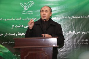 در ادامه، دکتور محمد یحیی بلاغت، معاون علمی و تدریسی پوهنتون کاتب، به‌عنوان سخنران اصلی برنامه، صحبتهای خویش را پیرامون اهمیت این روز و موضوعات مرتبط با حفاظت از محیط زیست در شرایط جنگ و منازعات مسلحانه ارائه نمودند. ایشان بیان کردند که بشر در برخورد با محیط زیست و طبیعت بسیار بی پروا بوده و این بی‌توجهی سبب تخریب گسترده  محیط زیست و منابع طبیعی شده است. به گفته ایشان، انسان امروز باید منتظر پیامدهای عملکرد نادرست خود در رابطه به محیط زیست باشد؛ پیامدهایی که در قالب تغییرات اقلیمی، بلایای طبیعی و واکنش خشمگینانه طبیعت، دوباره دامنگیر خود انسان خواهد شد. دکتور بلاغت در بخش دیگری از سخنان خود تأکید کردند که جنگ‌ها همواره تأثیر مستقیم و مخربی بر محیط زیست داشته‌اند. افغانستان، به‌عنوان کشوری که بیش از چهار دهه درگیر جنگ بوده است، یکی از نمونه‌های بارز آسیب‌دیدگی محیط زیستی بر اثر جنگهای طولانی مدت است. ایشان توضیح دادند که در طی این سالها، جنگلها، پوشش گیاهی، منابع آبی و خاک کشور دچار آسیب‌های جبران‌ناپذیر شده‌اند.
