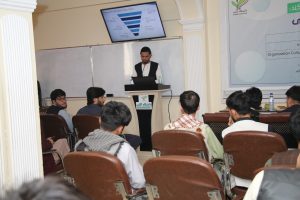 در بخش پایانی، نورالله علیزاده، محصل سمستر هفتم دیپارتمنت اداره تجارت، ارائه خود را با موضوع “اهمیت سواد مالی برای محصلان” انجام داد و بر ضرورت ارتقای دانش مالی در میان نسل جوان و نقش آن در تصمیمگیریهای اقتصادی تأکید نمود.